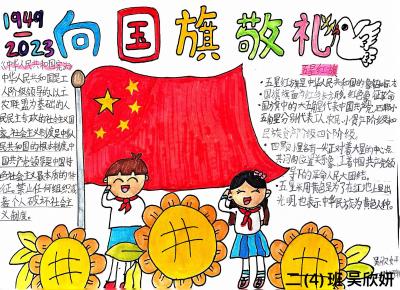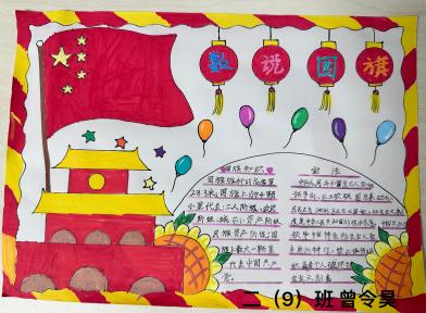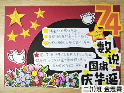 二年级的小朋友学习了宪法第一条,并查阅资料,了解五星红旗上的四颗小五角星的含义,向五星红旗致敬。孩子们以《向五星红旗致敬》为主题,制作了一份特别的数学小报。