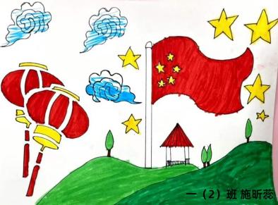 一年级同学通过画一画国旗,说一说国旗中蕴含的数学信息,如国旗的形状、国旗里的数字等,了解国旗。学国旗法,争做爱国小卫士。