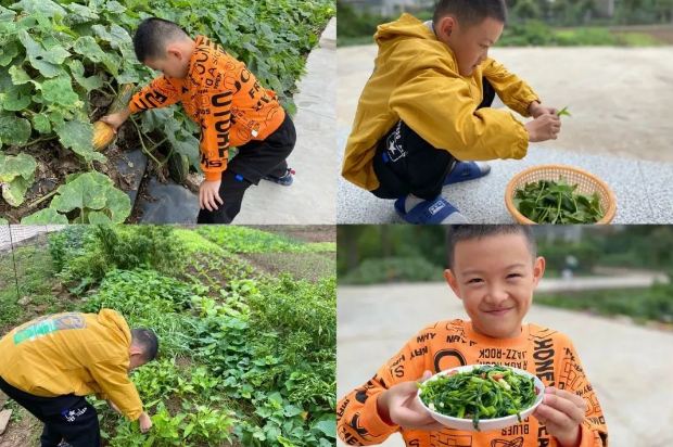 高年级的哥哥姐姐们,在大地丰收的时节,用多种形式展示少年儿童的劳动之美。四年级队员有的下田挖菜,有的昂首摘瓜,他们不惧泥泞、热爱劳动,亲身体验秋收的繁忙和农民的艰辛,还用一道道亲手烹制的佳肴与家人共享收获的喜悦。五年级队员则“打起擂台,各显神通”,进行劳动才艺大比拼。不论是洗衣拖地,还是择菜烹饪,都信手拈来。他们将劳动的快乐瞬间都记录在微视频内,还配上欢快的音乐,真是热爱生活的好少年!
