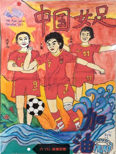 我为亚运加油助威。佳节期间,正值亚运盛会,六年级的同学们以“少年来加油 家国共团圆”为主题,展开丰富的创意和想象,为我国运动健儿制作了一张张精彩的加油助威海报。