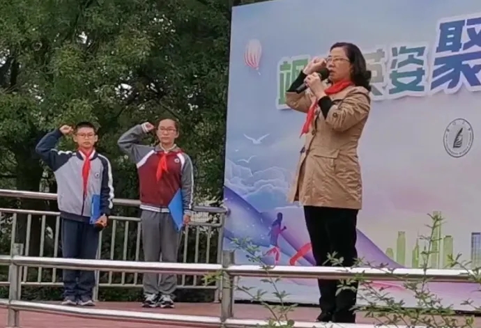 仪式的最后,党支部书记陈惠莲带领全体少先队员呼号。队员们嘹亮的嗓音承载着他们的光荣与梦想,“时刻准备着”的铮铮誓言已深深地镌刻在每一位队员的心中。