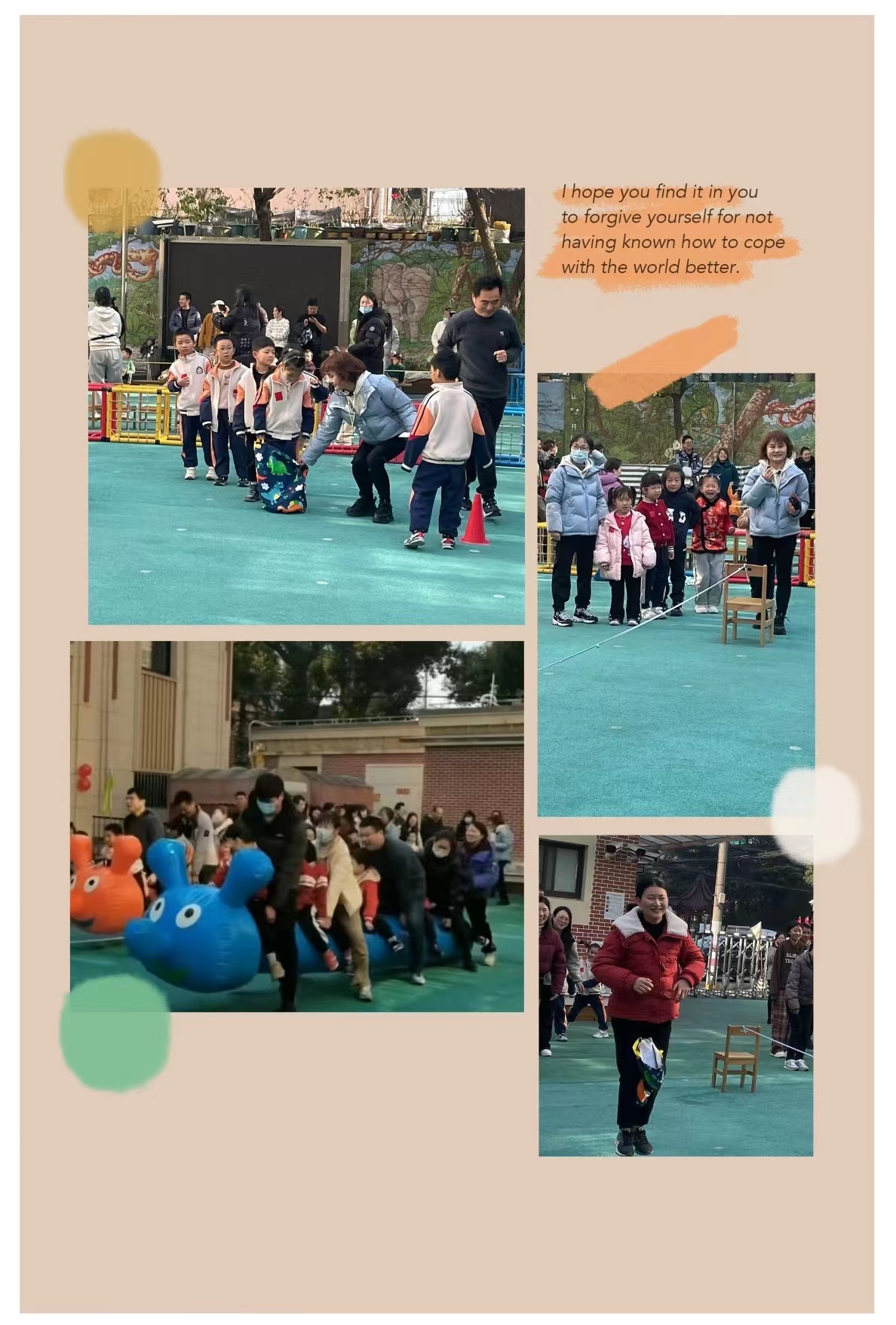 第二篇章,“大手牵小手快乐趣游戏”亲子运动会。在园长妈妈的致辞声中亲子“迷你马拉松”拉开了序幕……通过运动会,希望宝贝们养成坚持、耐心和勇敢的品质,磨练意志,强健体魄。