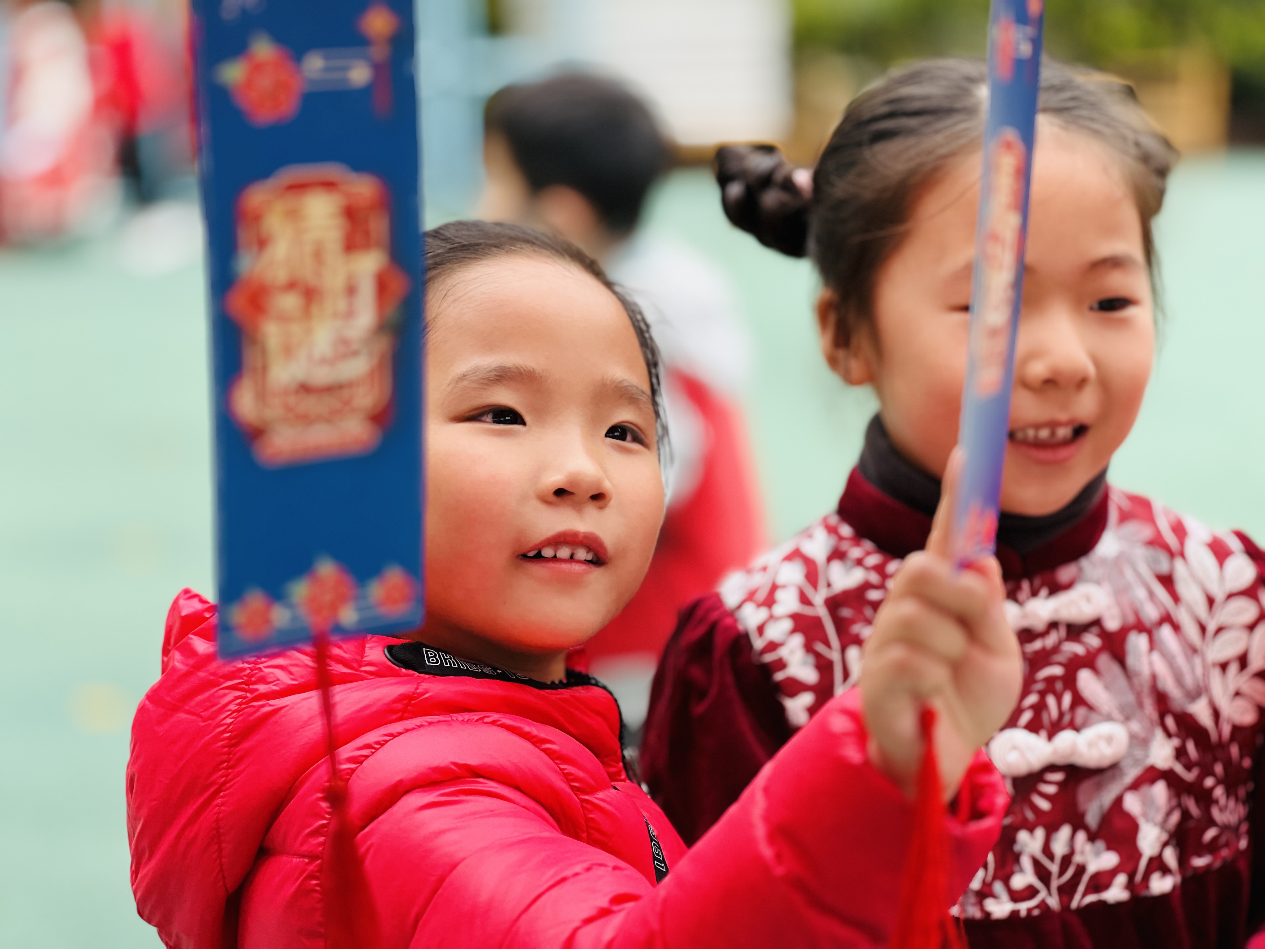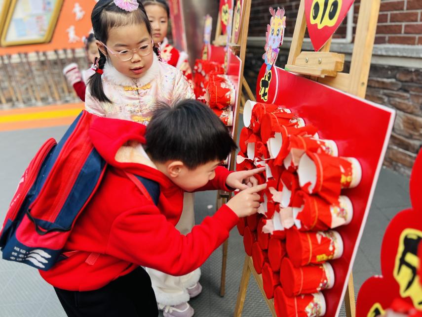 一大早,门口的老师和福娃们就已准备就绪,用微笑迎接着到来的每一位孩子。孩子们在门口抽盲盒,得福气,玩得不亦乐乎。快看啊!他们还迈着稚嫩的步伐,用自己的方式跨过成长跨栏,新的一年,我们一定要茁壮成长!