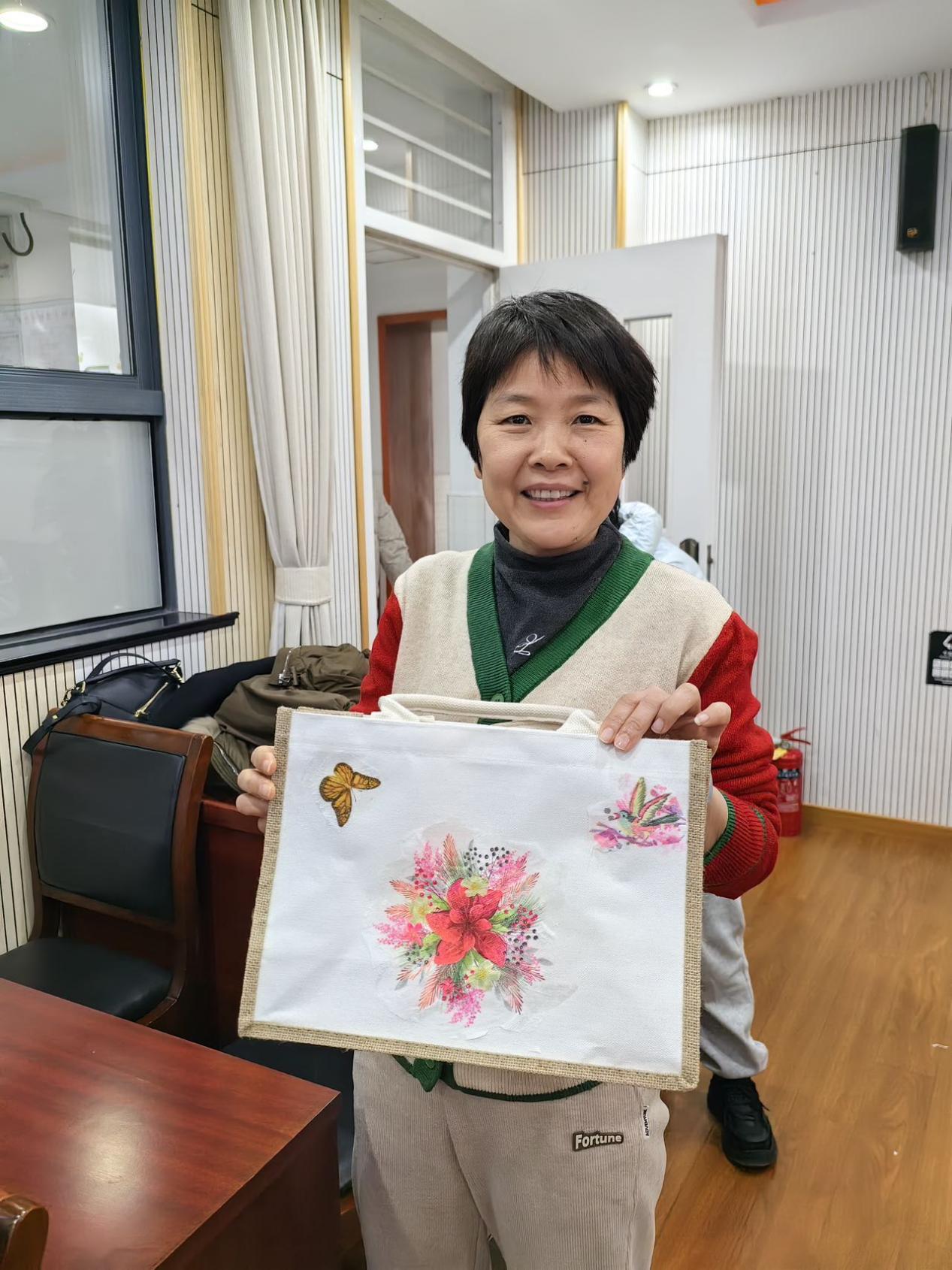 经过一个小时的努力,一个个精美的蝶骨巴特手工包呈现在大家的眼前。看着自己亲手打造的作品,大家非常有成就感。