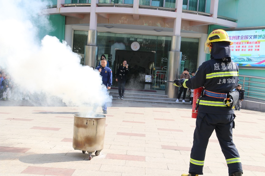 孩子们目睹了消防员穿着战斗服的英勇风采;还见识到了消防员熟练地使用灭火器扑灭火焰的场景。保安队长朱师傅和张静芬老师也亲自体验了使用灭火器的过程,进一步提升了校园的安全防范能力。