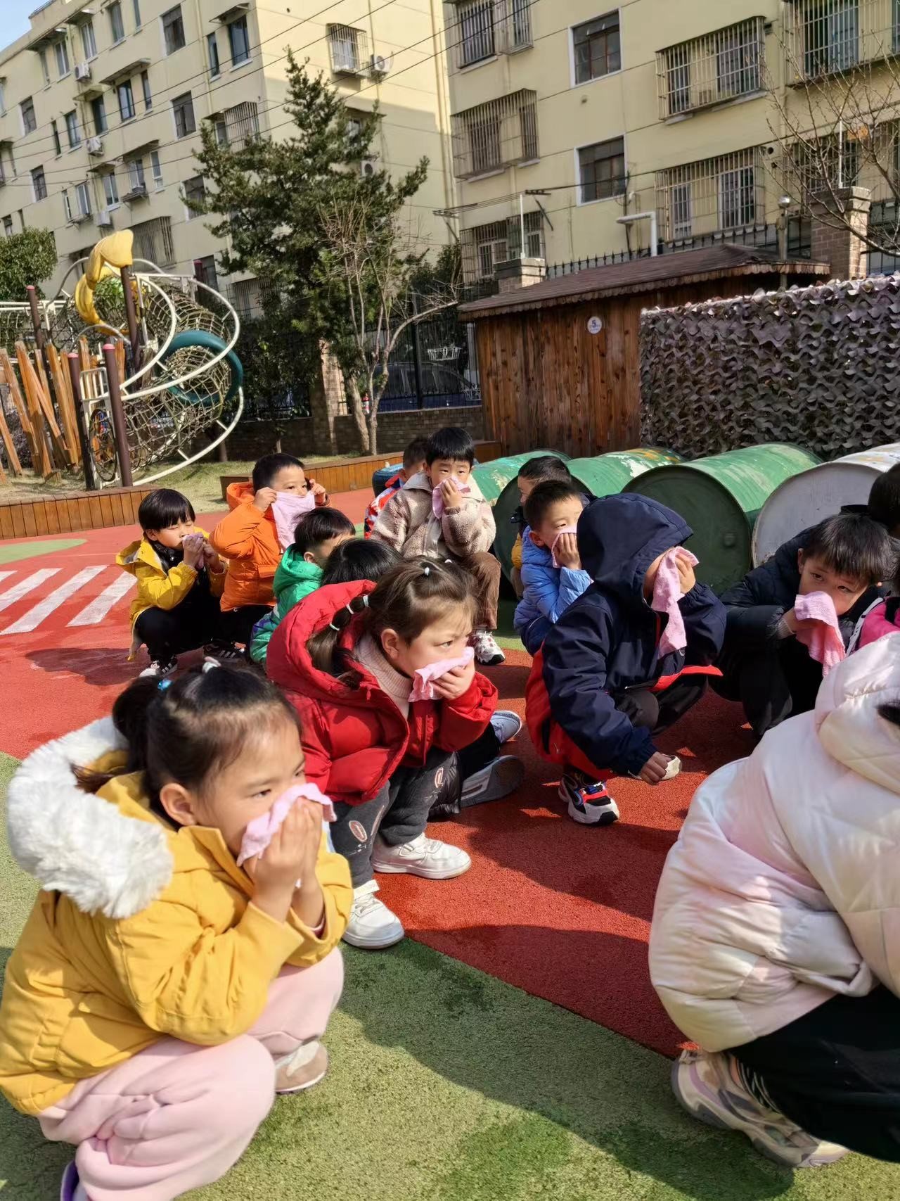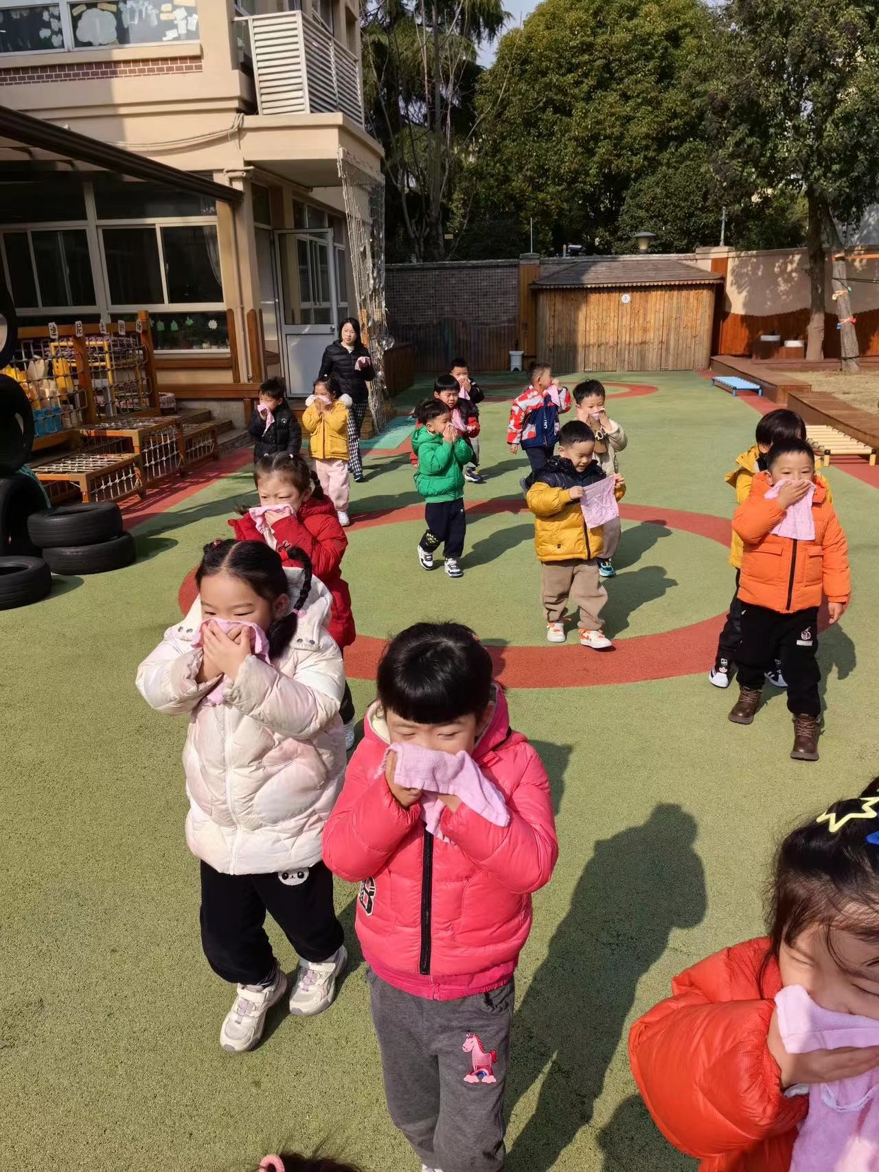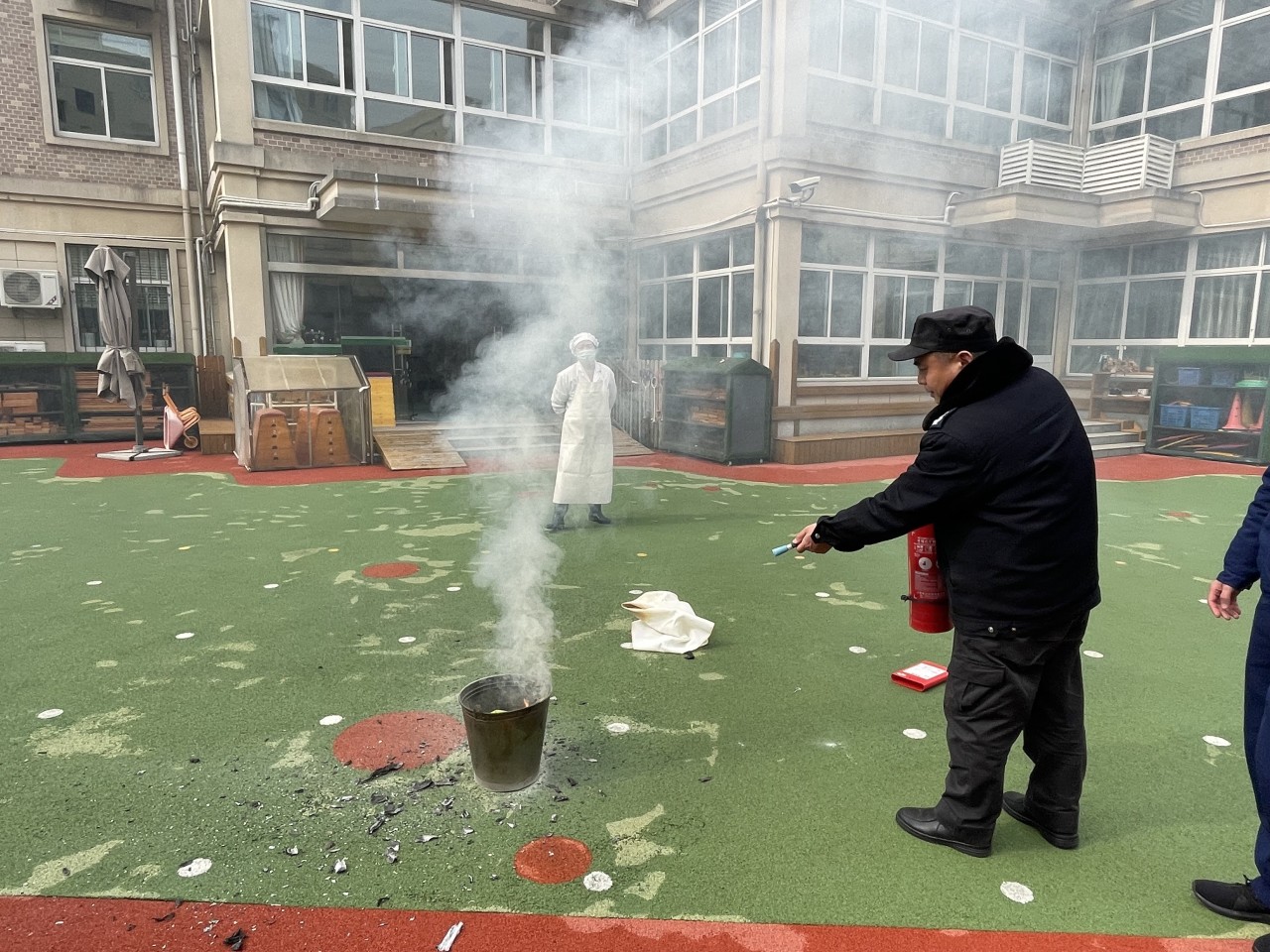 操场上,宋消防员为大家进行了灭火器灭火演示,门卫师傅和厨房阿姨再一次巩固了灭火器、灭火毯的使用,掌握了正确的使用方法。