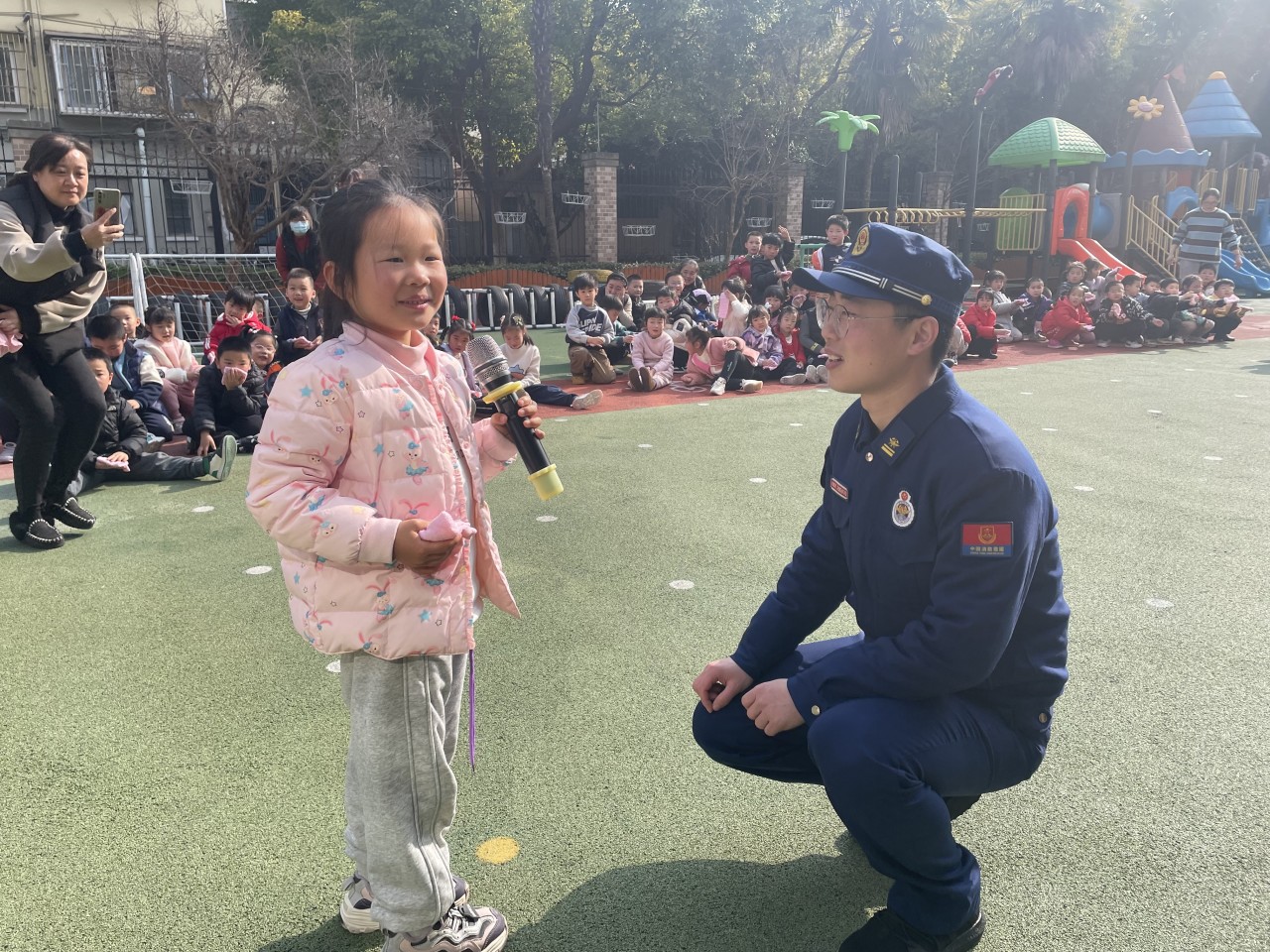 热情的小朋友还主动地向消防员叔叔提出了自己的小小问题:“为什么你们有时候穿得是红色的衣服、有时候穿的是蓝色?”“逃生的时候可以趴着走吗?”……听了小朋友的问题,消防员叔叔一一作了解答。