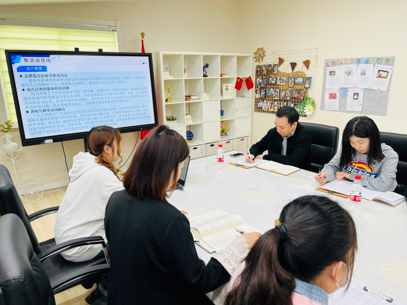 在研讨交流环节中,两校老师们各抒己见,共研共讨,共同提出要从儿童化、生活化出发,适当采用情境教学。随后马泾桥新村幼儿园的保教主任彭阮向月浦中心校的老师们介绍了大班数核心经验主要内容以及数在一日活动中的运用,让小学老师们清晰地了解了幼儿园的教学模式,并对大班幼儿的数经验表示赞叹。
