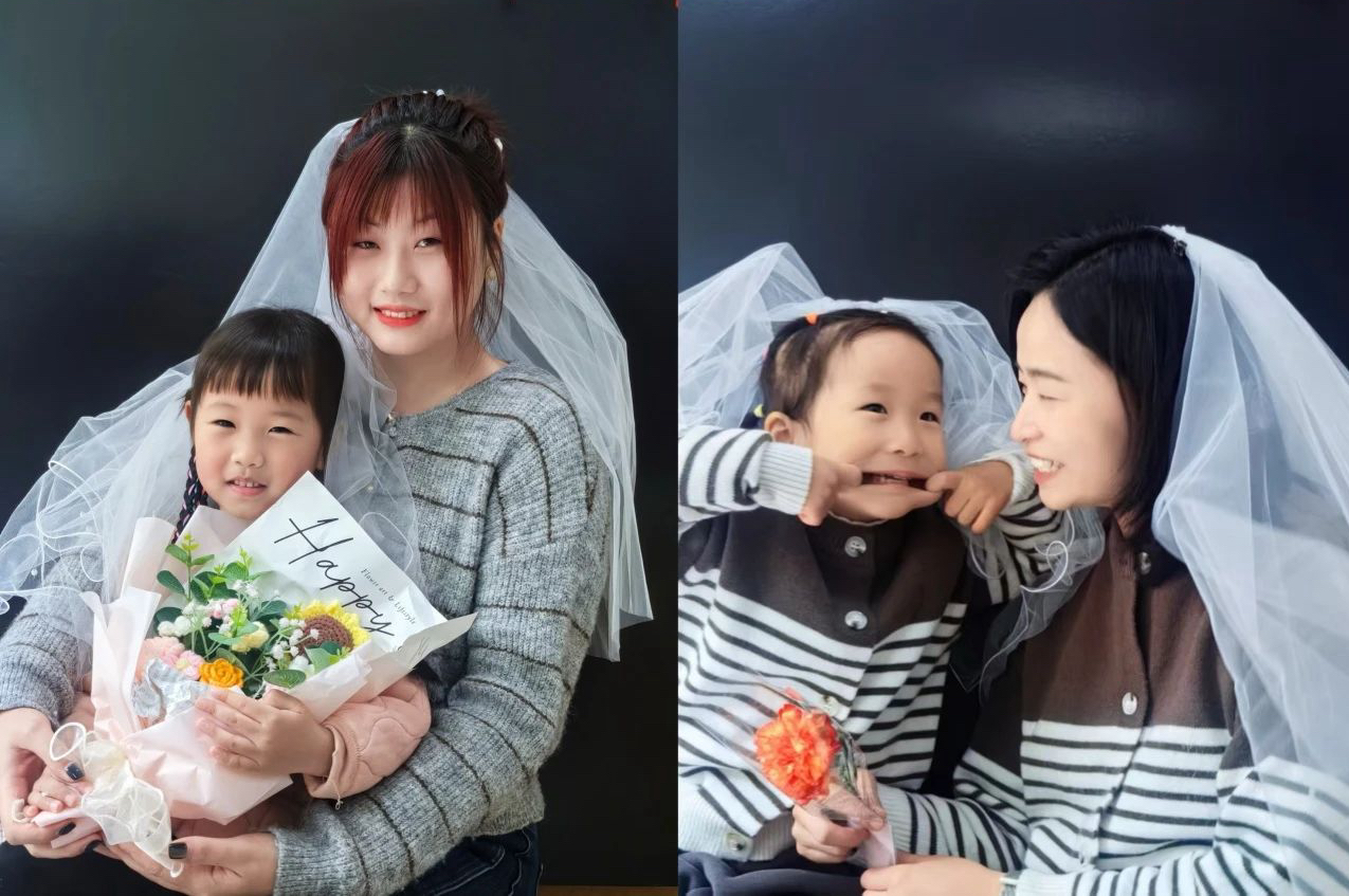 妈妈,你的结婚照中怎么没有我呢?生活中每个孩子都会这样问吧。小班的宝贝和女神一起定格岁月的韶华,用一张张俏皮又可爱的“亲子婚纱照”,去感动妈妈女神们的心。同时,小班的宝贝在老师的引导下,在家学做一些力所能及的小事,表达对妈妈、奶奶和外婆的感恩之情,真切地体验爱与被爱的幸福。