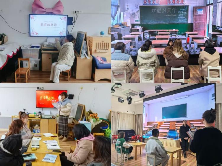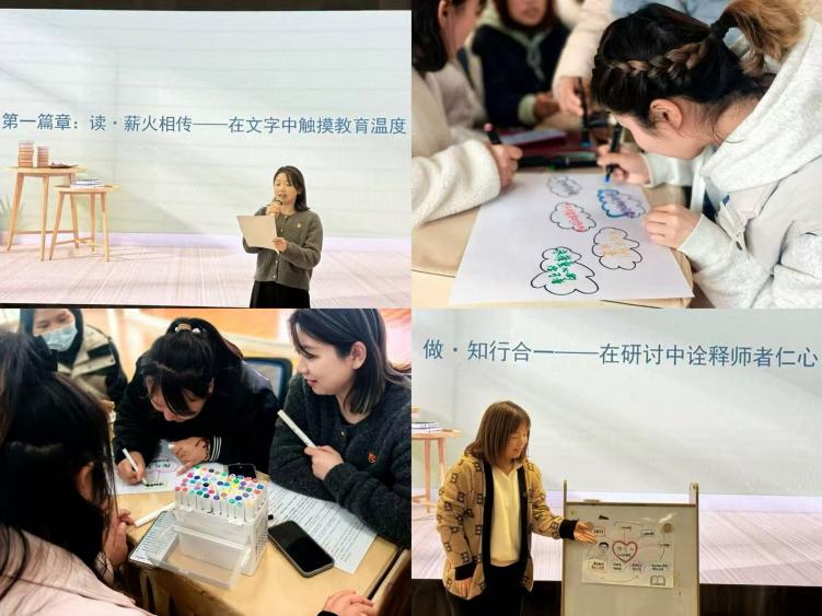 除此之外,在读书分享环节中,各年级组的教师们踊跃发言,分享自己的阅读心得,将书中的智慧转化为实际行动。紧接着,在师德师风角色讲演活动中,小班的老师们生动演绎了张桂梅校长的真实事迹;中班的老师们则讲述了于漪老师用真心、真情感染青年教师的感人故事;大班的老师们再现了陶行知先生独特的教育方式。