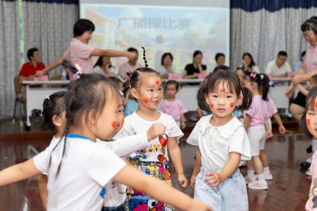 中班组的小朋友们率先亮相,他们迈着稚嫩却坚定的步伐入场。音乐响起,每一个伸展、每一个跳跃都充满了童真与朝气,红扑扑的小脸上写满了认真。他们的笑容如花朵般绽放在舞台上,动作协调,队形变换有序,充分展现了一个月来的飞速进步与可喜蜕变,赢得了评委和老师们的连连称赞。