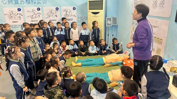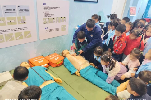 “先判断意识,再喊120!”在急救模拟区,讲解老师用人体模型演示心肺复苏,萌娃们排着队学习“按压姿势”,瞧,小手掌放在模型胸口,学得有模有样!“以后我也能帮到别人啦!”这股认真劲儿,必须给满分!