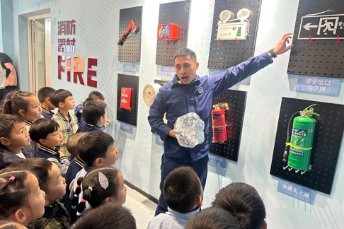 消防员叔叔手把手讲解消防水带、灭火器、防毒面具,连安全出口指示牌的小细节都没放过~