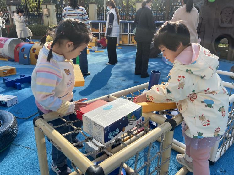 每天的户外自主游戏,都是宝贝们最期待的欢乐时光。一到操场,孩子们便像撒欢的小精灵,奔向各个角落探索乐趣。家长们也放下了平日的忙碌,或驻足观察宝贝与同伴的互动,或加入游戏成为“大朋友”,近距离感受孩子在玩耍中展现的自主探索能力、社交技巧与丰富想象力。亲子间的追逐打闹、携手搭建,让校园的每一个角落都洋溢着温暖的气息,成为秋日里最动人的风景线。