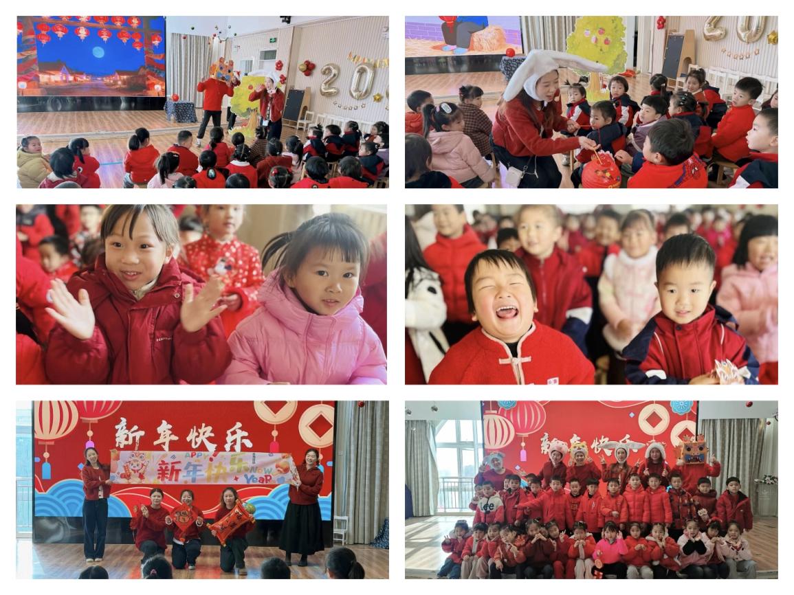 精彩的童话剧场闪亮登场!老师们分别化身年兽、龙宝宝、兔老师等,带着惟妙惟肖的装扮和生动有趣的表演,上演了一场“智斗年兽”的精彩剧目。小石头们睁着圆溜溜的大眼睛,看得津津有味,时而为小动物们捏一把汗,时而又为赶走年兽拍手欢呼,剧场里的笑声一阵高过一阵,满满都是新年的欢乐滋味。