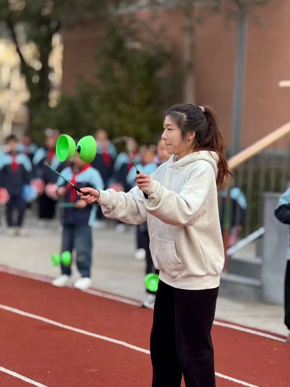 紧接着,空竹表演带来了别样的传统韵味。彩色的空竹在杨玉婷老师和空竹社团同学们的手中仿佛被赋予了生命,时而腾空跃起,时而盘旋飞舞。传统运动的独特魅力在校园中尽情绽放,让师生们真切感受到中华优秀传统文化与体育精神的奇妙交融,为闭幕式增添了浓厚的文化气息。