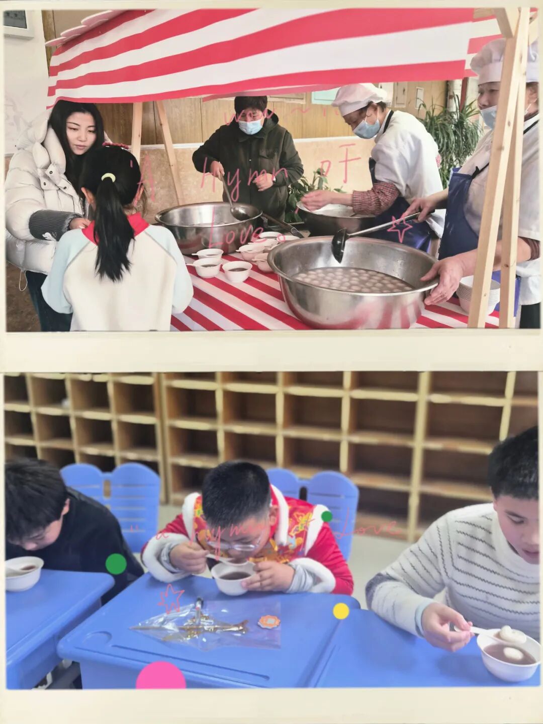 美食区里香气四溢,汤圆、八宝粥、糖画三款传统美食,勾得孩子们垂涎欲滴。食堂的阿姨们现场煮制汤圆,热气腾腾的汤圆、软糯香甜的八宝粥盛在碗里,孩子们捧着碗细细品尝,满口香甜,也在舌尖感受着元宵节的团圆暖意。