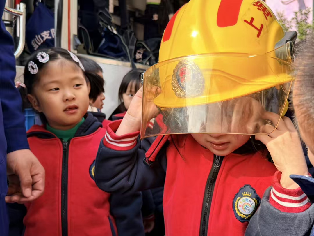 随后,幼儿分批参观消防车,消防员结合幼儿的现场提问、为大家讲解消防水带、灭火器等装备的用途,演示其使用方法,同时介绍警灯、警报器的作用及使用场景,幼儿近距离感受消防器械的独特魅力,内心受到极大震撼。整个过程中,孩子们有序参观、主动探索,不仅直观认识了各种消防器械,更在心中种下了消防安全的种子,对消防员这一职业也充满了敬佩与向往。