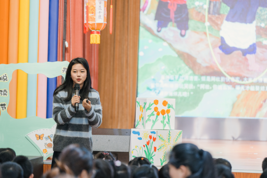本次开幕式特邀上海大学儿童文学博士张杏莲老师,带来新晋国际安徒生奖插画家奖蔡皋老师的作品《百鸟羽衣》。鲜活语言与趣味互动交织,让孩子们沉浸在奇幻的故事世界里,听得入迷、乐在其中。