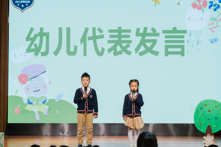 幼儿代表陈佳研、陈镜宇两位小朋友自信登台,分享自己对于“悦”读节所思所感。稚嫩且真挚的话语,传递着孩子们对阅读最纯粹的热爱。