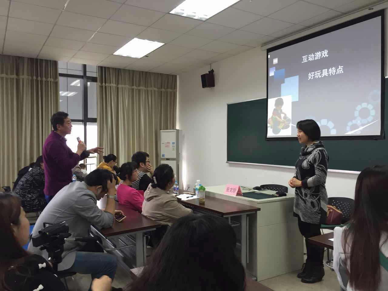 在孩子的日常生活当中,最主要的活动就是游戏。在游戏过程中,孩子会自然而然地提升各项能力。一件好的玩具,可以发挥吸引孩子的作用,提供孩子进行游戏的动机,让他更愿意、也更顺利地进行游戏。那究竟玩具对孩子有哪些好处呢?张老师就分别从如何选择玩具、玩具对宝宝的作用、如何与宝宝进行有效早教游戏,以及父母如何透过观察孩子对玩具的反应来检视孩子的发展情况等方面进行了讲授,还给家长们列举了一些生活中的废旧材料制作的玩具;张老师还在授课中与家长互动,现场的气氛活跃。