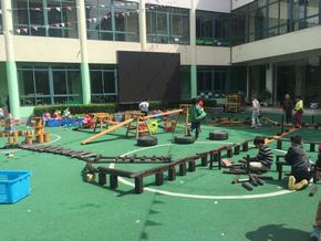 大型建构积木、大雪花片、乐高积木、户外建筑积木、积塑等都是孩子们创作的原材,本班的小伙伴、老师、阿姨都是孩子们合作搭建、共同商讨、一起解决问题的“工友”。搭建活动中,只见孩子们既灵活迅速又从容不迫,他们一个个聚精会神、互相协作,陶醉在创作之中。短短半小时,有栩栩如生的“地铁”、有漂亮的“创意公园”、温馨的“购物中心”等作品展现出来,真是五彩缤纷,令人目不暇接。孩子们脸上露出自豪的笑容,感受到了合作的乐趣。