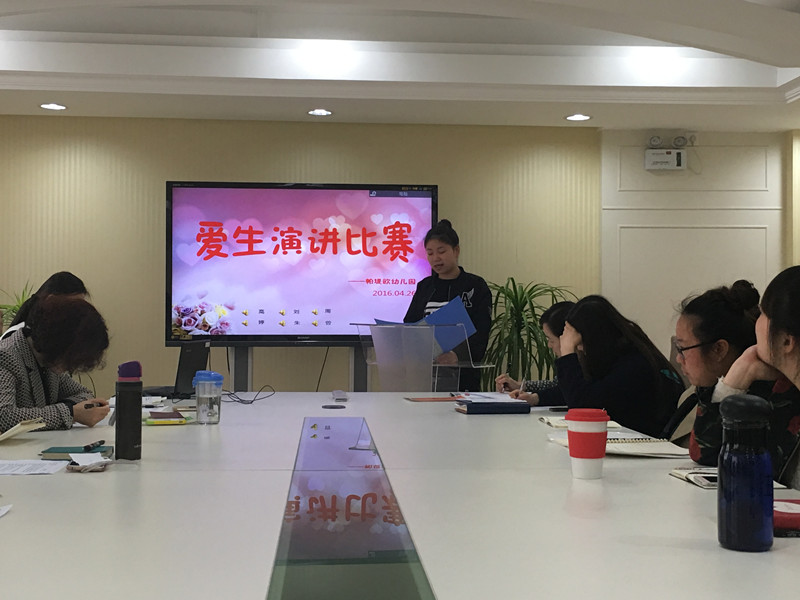 本月是我园的爱生活动月,本次爱生月的口号是“四个一”,分别是关爱一个特殊儿童(个性、习惯、家庭等等);跟每个孩子说一句关爱鼓励的话语;每天说一个有爱的小故事;撰写一个爱生案例。教师们运用适合演讲的文体写了一个个充满童趣、爱意的爱生故事,并在组内进行了交流,于4月27日7名被推选出来的教师参加了校级层面的爱生故事演讲比赛,期间7位教师从不同角度诠释了爱生的真谛,让我们真正领会了爱的无私、爱的方式。爱生演讲比赛结束了,但是爱的行动永远在延续!