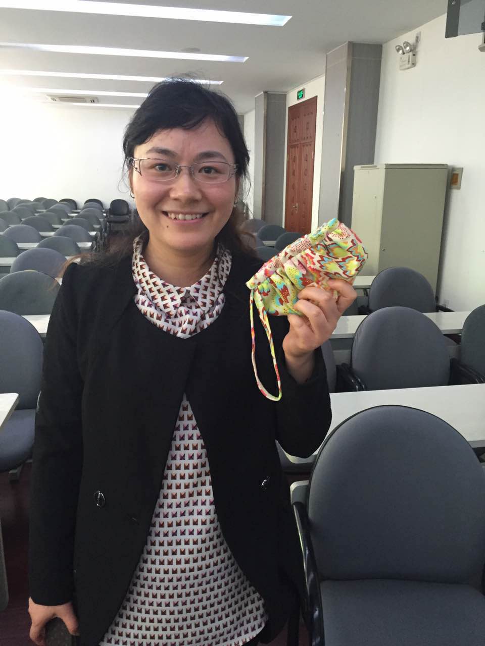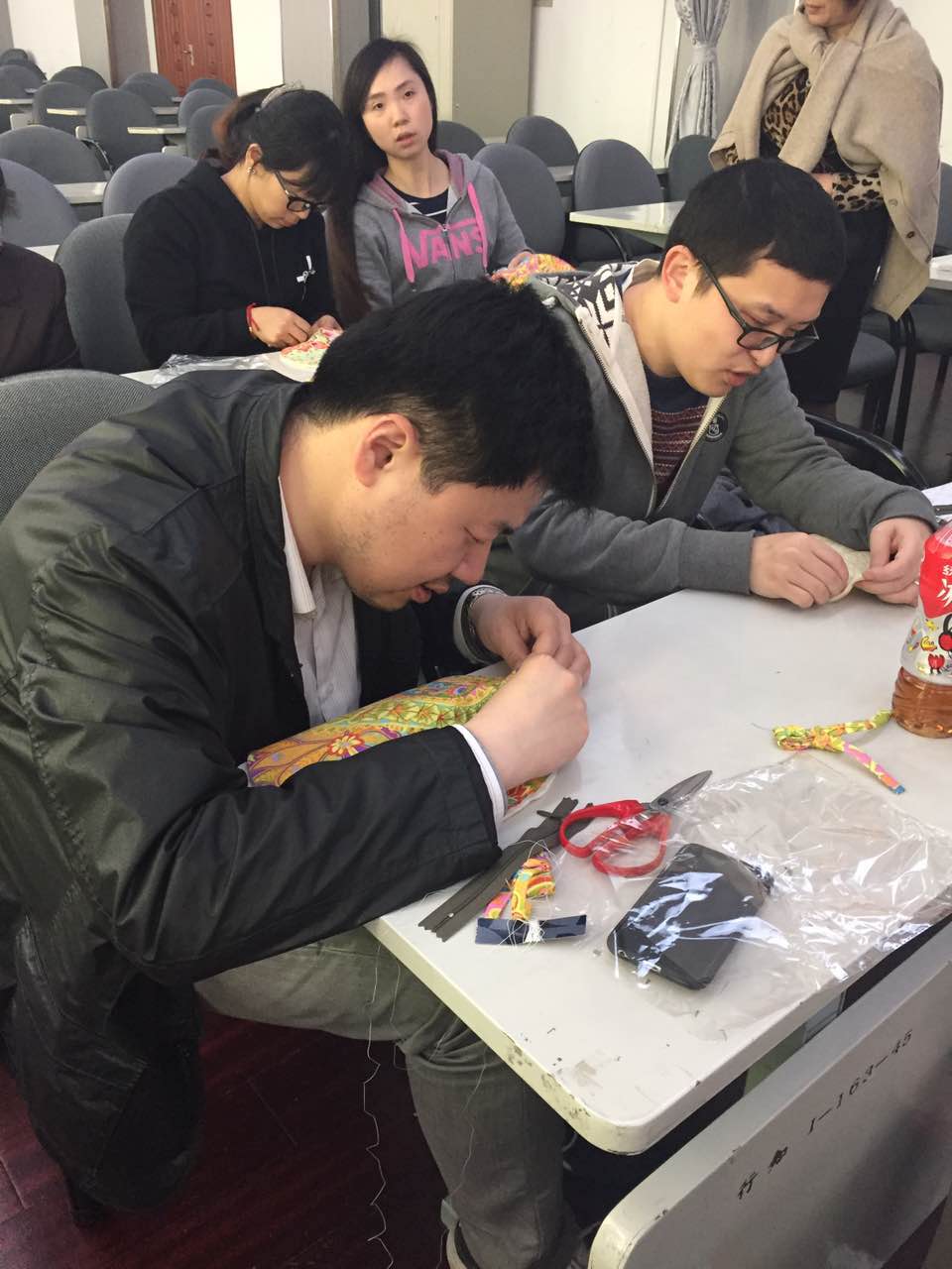 本次活动内容是手工缝制YOYO零钱手包。由于需要进行比较复杂的缝制,所以对教师们的手工技能要求较高,虽然学习制作的过程中很有难度,但是教师们都学习得非常认真,尤其是几位男教师的表现可圈可点,他们从学习怎样穿线,怎么用针去缝制,每一步都完成的极为细心细致,呈现给我们的作品质量丝毫不亚于女教师们。