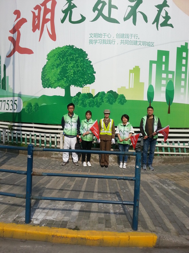 2016年4月29日上午7点,四道绿色的身影出现在沪太路汶水路的十字路口,他们是来自上海市行知实验中学的四位青年教师:陈岭、邹元、李梦鸽、米雪。今天的他们有一个特殊的身份——交通志愿者。