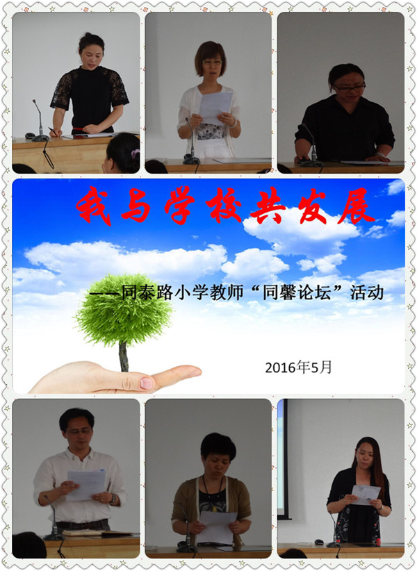 为充分发挥教师的群体智慧,增强主人翁意识,凝心聚力,推动学校各项工作再上新水平、再创新成就,2016年同泰路小学在全体教师范围内开展“我与学校共发展”论坛活动。