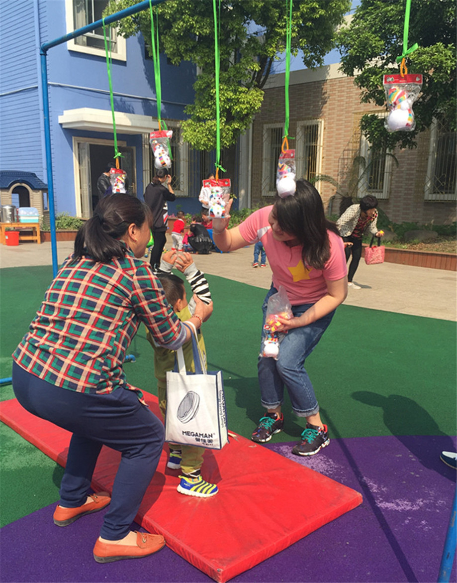 2016年5月11日、12日两天,顾村中心幼儿园面向所属社区开展了幼儿早教亲子活动。此次活动通过前期的精心设计和准备,幼儿园的教职员工分别承担了活动实施与指导、卫生消毒、安全护卫等各项工作。指导老师则根据宝宝的年龄特点精心设计了不同的集体亲子活动内容,有好玩的大浴巾、有趣的涂鸦、我穿爸爸的鞋、好玩的靠垫等等。这些活动深受宝宝们的喜欢,老师们在活动结束后还分别对这些年龄段的家长进行课后指导。