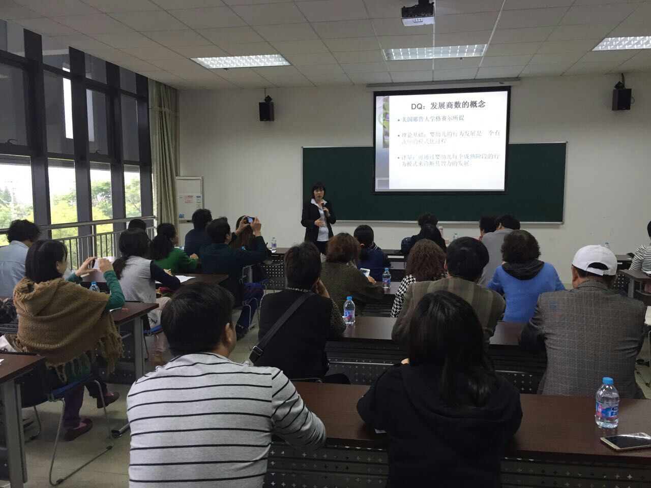 5月15日下午,“第九期女婴妈妈阳光屋和大妈妈课堂培训班”邀请华东师范周念丽教授,为杨行镇社区03早教家长进行了“促进孩子‘3Q’发展,夯实人生成功基石”的授课活动。著名学前教育专家周念丽教授用生动的案例和扎实的理论知识,围绕0-3岁幼儿的发展特点开展讲座。