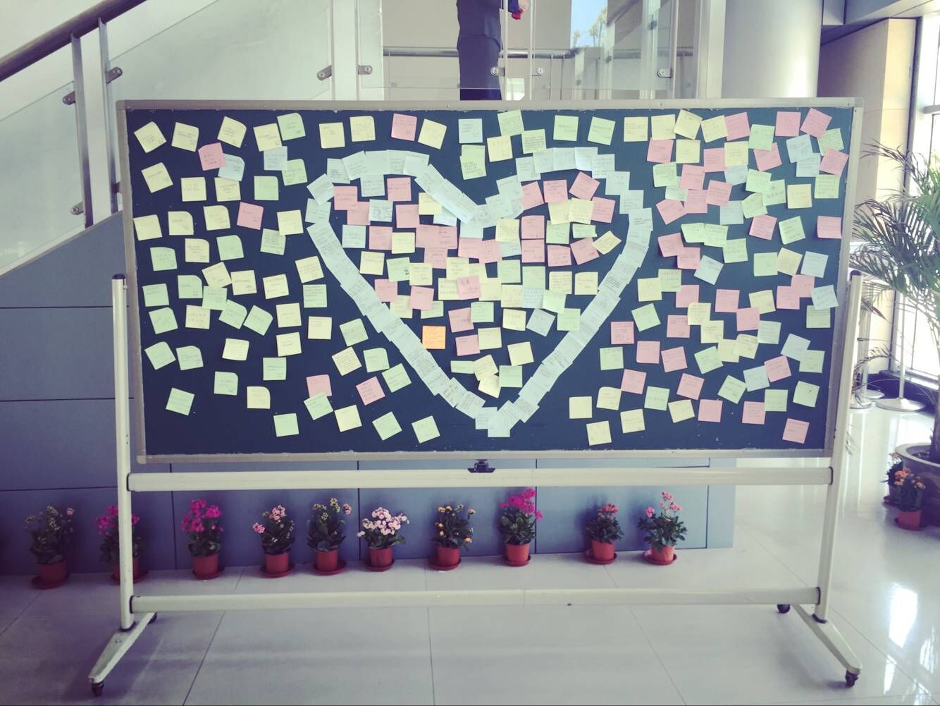 本次“送福”活动由校团委学生会发起,师生们聚集在启智楼大厅,有序的在写有“高考加油 学生送福”以及“高考加油教师送福” 的两块黑板上提笔留言,将大家无尽的祝福送给高三学子。
