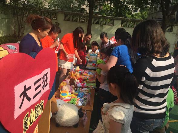 即将毕业的孩子们把自己的玩具、图书带来摆放在了义卖展台上,老师们也将自己DIY的手工作品搬上了展台,真可谓是琳琅满目。活动结束大家在爱心留言板上留下了自己的爱心祝福。