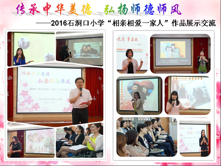 5月27日下午,石洞口小学党支部以“传承中华美德,弘扬师德师风”为主题,开展“相亲相爱一家人”作品展示交流活动。