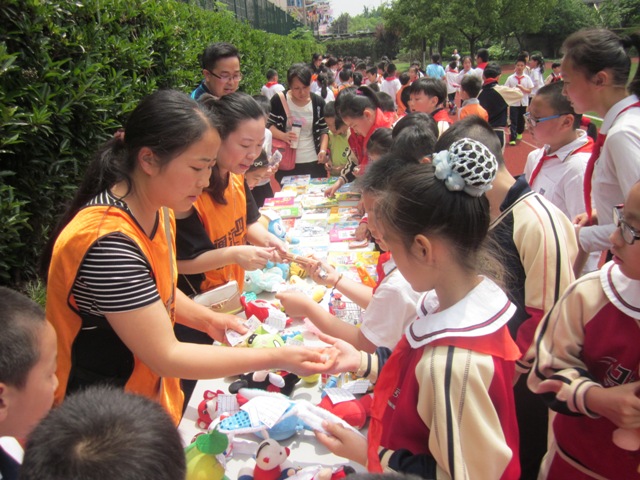 随后举行了爱心义卖活动,16个中队义卖店铺和一个教师爱心专场店铺设立在操扬上,各店铺商品琳琅满目,每个店铺由家长志愿者帮助做售货员,师生们纷纷慷慨解囊,奉献自己一片爱心,义卖商品很快抢购一空。据悉,本次爱心义卖活动共筹得4067元,将用于捐助区、校困难学生。