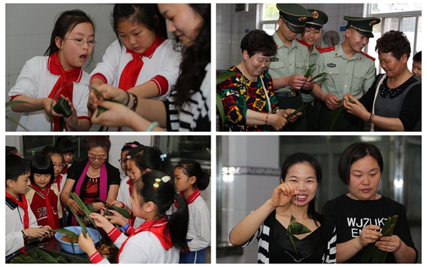 端午来临之际,同达小学与乐业五村二居委、武警部队举行迎端午活动,社区志愿者、家长志愿者、学生和战士们共聚一堂,亲手包出一个个粽子,迎接中华传统佳节的到来。