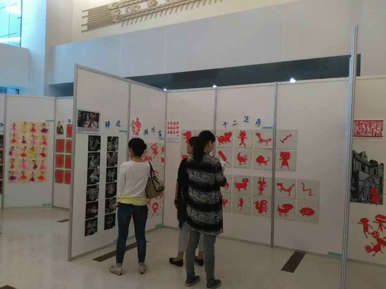 步入会展,就领略到了孩子们眼中的世界绚丽多彩,有剪纸、油水分离、拓印、糖画等不同的美术形式,还集合了西方经典名画、中国画、非洲文化艺术以及现代派、抽象派、立体画派的艺术风格,突出了幼儿喜爱的动漫形象和我国的民间民俗文化,画种多样、画风多变,凝聚着老师们的智慧,尤其小班的“大头儿子和小头爸爸”画作,创意十足,诙谐幽默。
