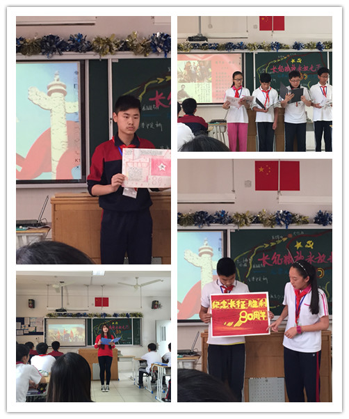 此次主题班会充分利用多媒体网络资源,集合朗诵、长征知识问答、绘制小报、讲述红军故事等形式,让学生了解中国工农红军长征的胜利,是人类历史上的奇迹。