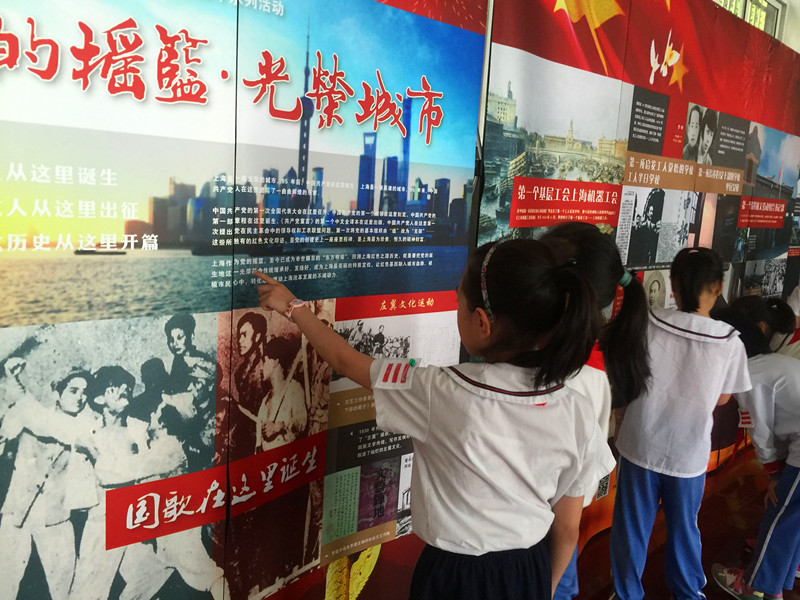 为了纪念中国共产党成立95周年,上海市陶行知纪念馆配合上海市委宣传部、市委党史研究室、市红色旅游协调小组办公室联合主办的“党的摇篮•光荣城市”巡展系列活动,深入三公里文化服务圈内共建中小学校进行宣传展示,让“红色基因”融入城市血脉,根植小朋友心中。