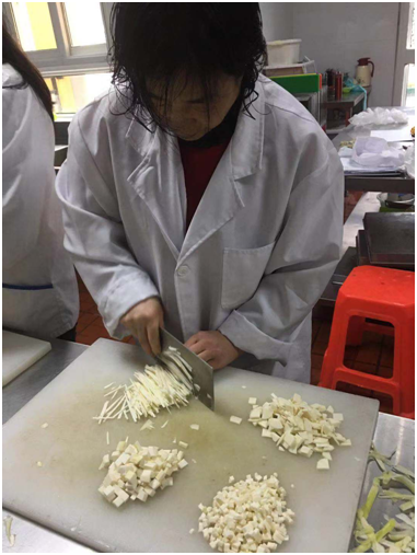 营养员根据荤素搭配,深浅搭配,干湿搭配等。根据幼儿不同年龄进行切配,制定一天的带量菜谱。