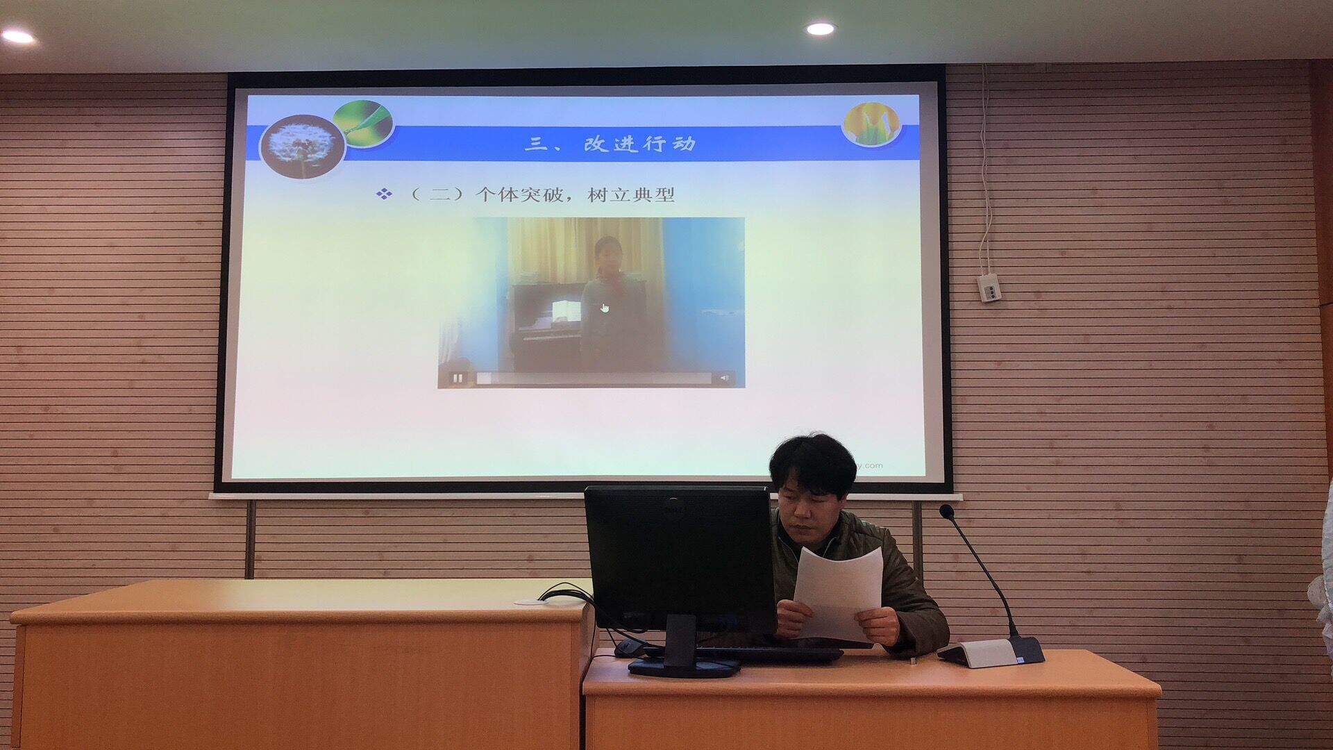 汤老师交流的主题是《小学生良好歌唱气息习惯的形成研究》,他从歌唱教学中存在的问题、问题产生的原因调查分析、改进行动和反思小结四个方面进行了论述。