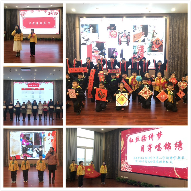 新学期送“福”活动成了本次典礼的亮点。1-4年级学生代表分别展示自己创作的福字、对联、灯笼,并送上了新年祝福和期盼,老师也以歌声送上新年的祝福,最后申校长深情款款做了新学期致辞,校长回顾了2018年所取得的成绩,提出了新学期的希望,并鼓励全体师生不忘初心,砥砺前进。