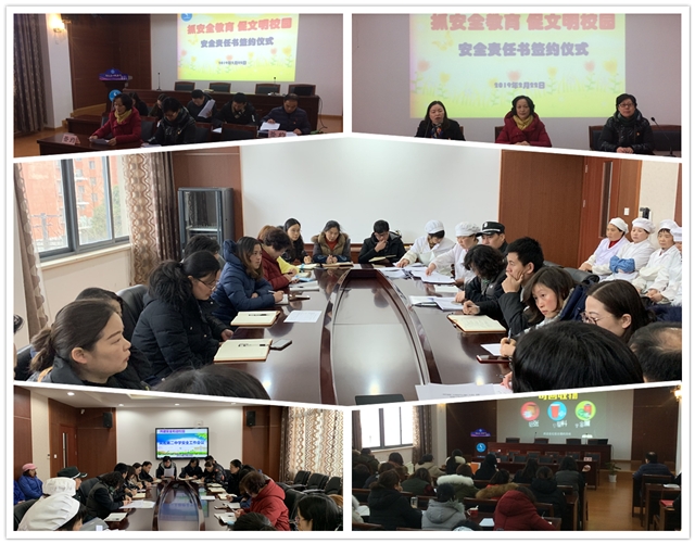 签约责任书主要内容,包括《上海市吴淞第二中学学校安全工作责任书》、《上海市吴淞第二中学2019年学校消防安全工作责任书》、《上海市吴淞第二中学2019年学校综合治理安全工作全体教职员工责任书》等。之后,行政、安全专管员、年级组长、教研组长和专用教室管理员分别和校长、支部书记签约承诺。最后,校长还重申了学校安全工作要点,她要求大家守住安全底线、全心投入,助力学生成长和学校发展。签约仪式后,全校教职员工按照要求例行校园安全周检工作。