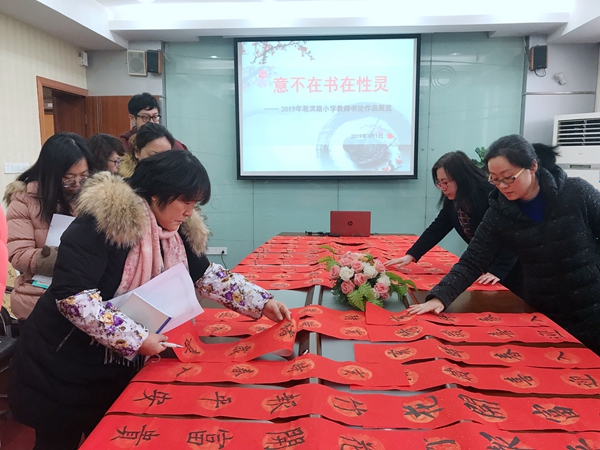 三月伊始,淞滨路小学全体教师济济一堂,在《春之歌圆舞曲》那轻快、悠扬的旋律中,我们的教师书法社团以别样的形式开启了新学期的书法文化之旅。