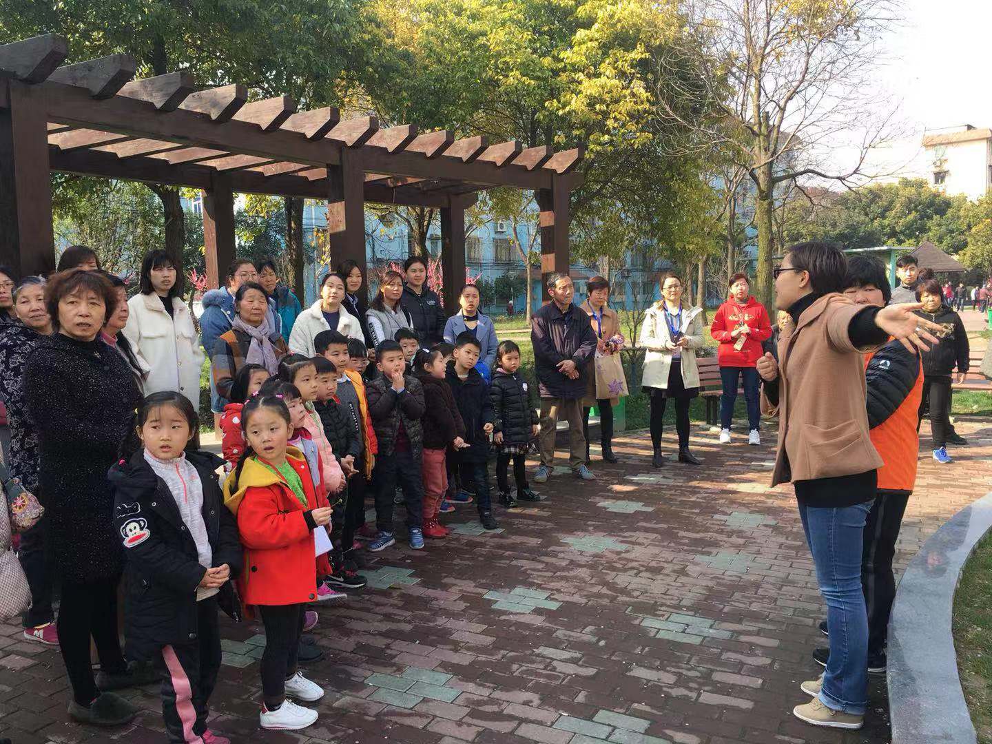 活动邀请了淞涛绿化的周丽丽老师来为小朋友们上绿化科普课。周老师在淞南八村小区内,为幼儿和家长们介绍了红梅、桂花、红叶石楠、红枫、雪松、橘子树等常见植物的特征和生长条件。周老师讲解完树木的知识以后,居委干部给小朋友们送上了认养卡,小朋友们在认养卡上认真填写了自己的名字和日期,再把认养卡挂在了喜欢的红梅或者是樱花树上。
