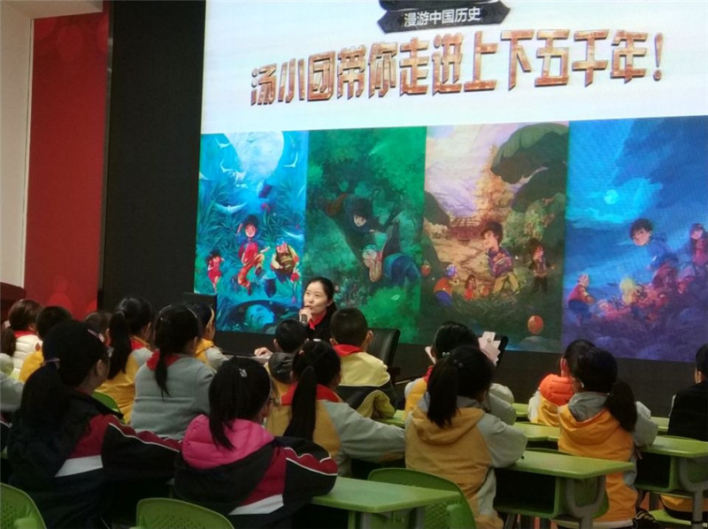 交流会上,谷清平老师为孩子们介绍了他们喜欢的“汤小团”和很多书中涉及的历史知识。孩子们听得十分入迷,活动现场不时响起阵阵掌声和欢笑声,互动环节也让作家与孩子们的距离拉得更近了。交流会后,阅览室门口就排起了长队,孩子们有序地进入阅览室挑选自己喜爱的作品,翘首以盼谷老师在自己的书上签下她的名字。他们爱不释手地翻阅着自己的新书……