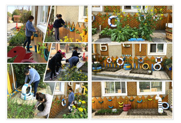 此次环境布置中,教师根据幼儿的年龄特点,用灵巧的双手和对幼儿自然教育的独特感悟,大胆构思、精心创设,用轮胎、麻绳、海星等材料与装饰品,创设了融合了海洋风、森系等主题风格的种植园,将教育、艺术、和谐地融为一体,使种植园焕发出勃勃生机,为孩子们的探索自然创设了良好的平台和氛围。每块地附近均有工具摆放处,易于幼儿操作、收放,满足了幼儿亲近自然的天性。