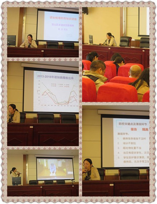 3月29日下午,友谊社区防保科黄洁医生向全体教职员工作了如何防控诺毒病毒的专题讲座。