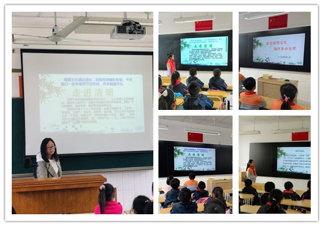 少先队员们利用课余时间上网搜索清明节的资料,让全体同学充分了解清明节的由来和历史,知道清明节的习俗及文化内涵。中午,各中队召开“感受清明文化,缅怀革命先辈”十分钟队会活动课,队员们将自己收集来的清明节的由来、节日历史以及风俗习惯等知识分享给全体队员,并通过革命英雄故事的宣讲、播放革命影片视频等方式使大家进一步了解革命历史,接受传统教育,营造了缅怀革命先烈,弘扬民族精神的浓厚气氛。